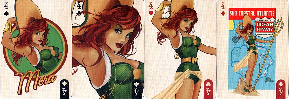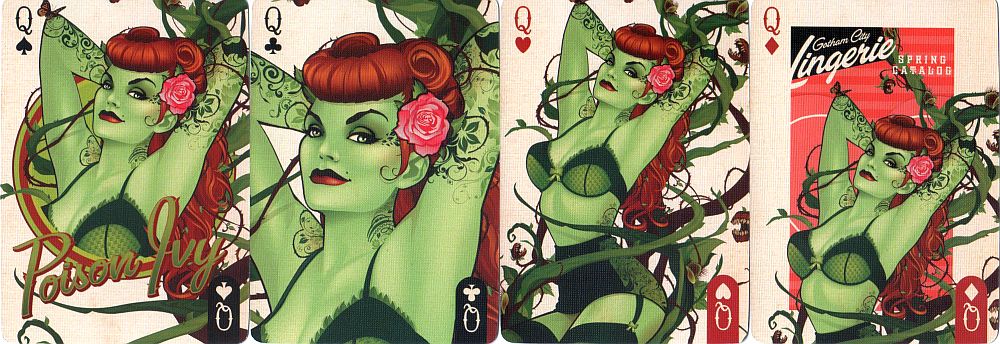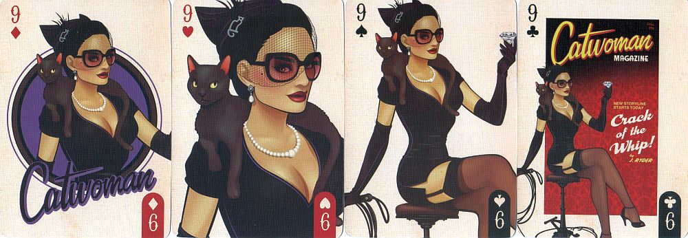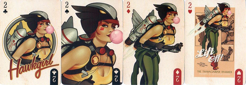 Playing cards based on women from various DC comics, drawn in a pin-up style.
