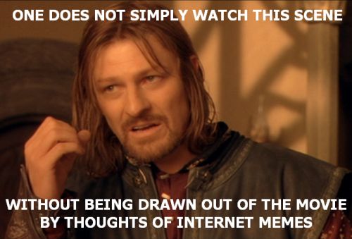 Oh... and I feel like I should mention that after this movie (or maybe the trilogy as a whole) was released, there were lots of jokes from some people who thought Frodo and Sam seemed like... more than friends. Which is ridiculous, because first of all, you don't bloody well have to be in love with someone to be devoted to them; and secondly, it was clear from the beginning that Sam is into a girl named Rosie. (But there was a joke on an episode of The O.C. that I actually found quite funny.)